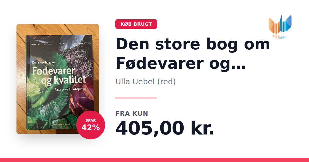 Lige nu kan du købe "Den store bog om Fødevarer og kvalitet" af Ulla Uebel (red) til kun 405,00 kr. Du sparer hele 42% af nyprisen! Bogen du ser her er brugt, og i perfekt stand. Vi har i øjeblikket kun et enkelt eksemplar til salg af "Den store bog om Fødevarer og kvalitet", så slå til mens du kan!