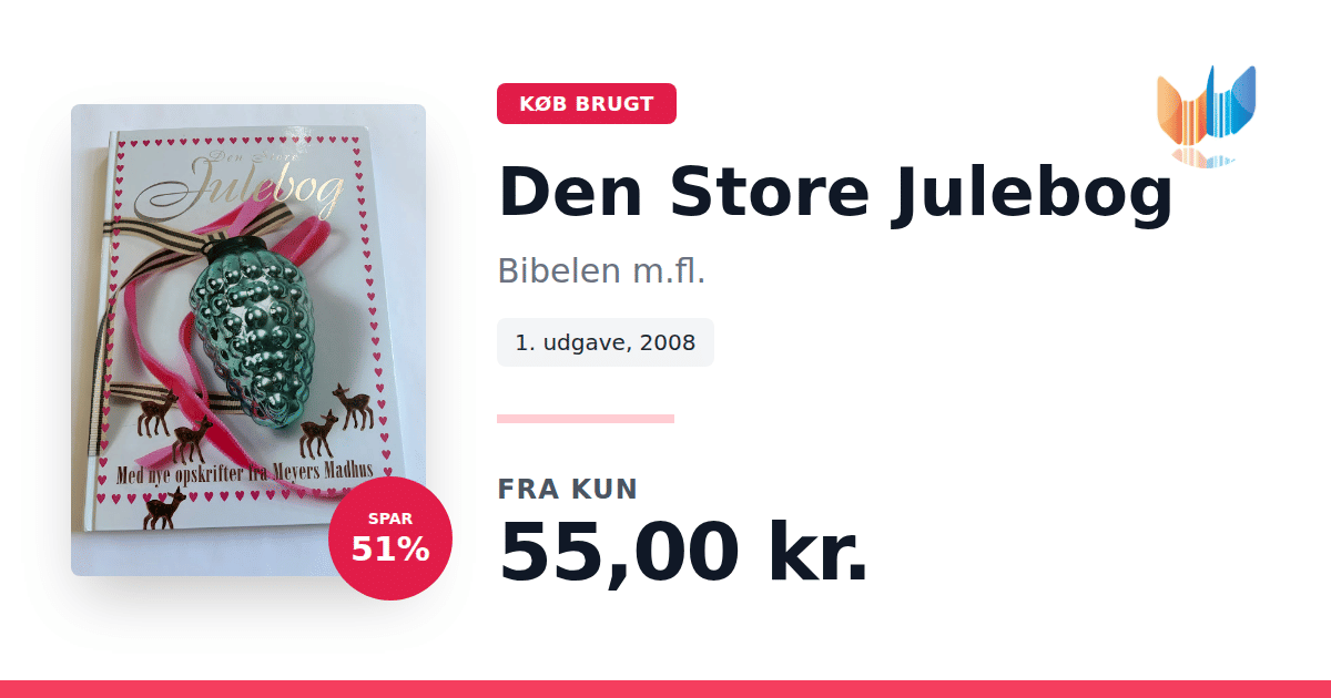 Lige nu kan du købe "Den Store Julebog" af Bibelen m.fl. til kun 55,00 kr. Du sparer hele 51% af nyprisen! Bogen du ser her er brugt, og i perfekt stand. Vi har i øjeblikket kun et enkelt eksemplar til salg af "Den Store Julebog", så slå til mens du kan!