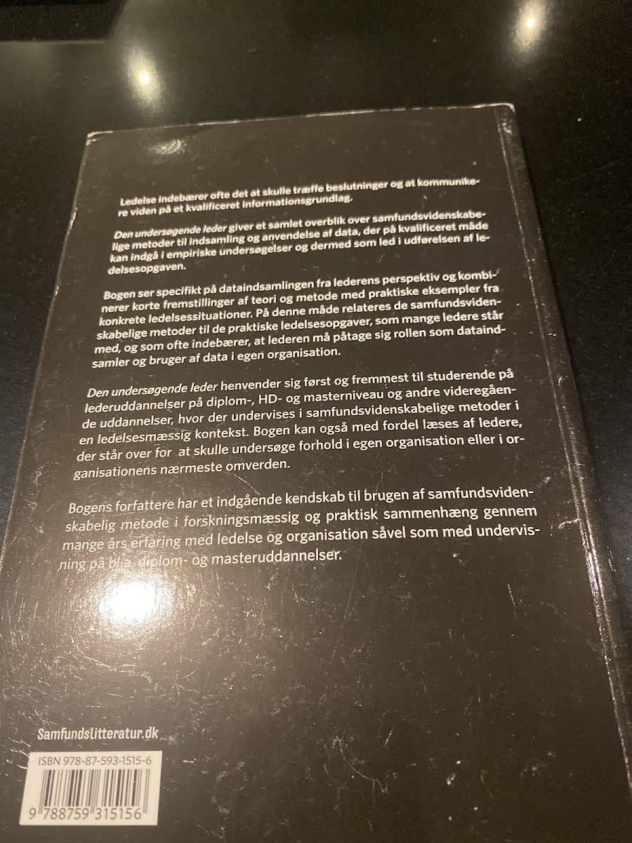 Den undersøgende leder af Steen Hvid og Jørn Kjølseth Møller er en central ressource for ledere under Diplomlederuddannelsen og for andre, der ønsker at styrke deres ledelseskompetencer. Bogen præsenterer metodiske og videnskabsteoretiske overvejelser, som understøtter beslutningsprocesser og dokumentation af organisatoriske indsatser. Med et solidt fundament i samfundsvidenskabelige metoder leverer bogen praktiske eksempler og giver læseren redskaber til at analysere problemstillinger ud fra en ledelsesposition. Den undersøgende leder fungerer både som undervisningsbog og som håndbog, der kan guide lederen i indsamling og bearbejdning af viden om egen organisation.
