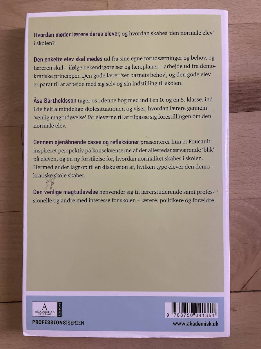 Hvordan udøver lærere i skolen en magt, der ved første øjekast fremstår venlig og imødekommende? I Den venlige magtudøvelse: Normalitet og magt i skolen undersøges, hvordan læreren – med demokratiske idealer som bagtæppe – gennem dagligdags interaktioner bidrager til at forme billedet af den "normale elev". Bogen stiller skarpt på, hvordan tilsyneladende omsorgsfulde tiltag skjuler en underliggende magtudøvelse, der åbner for en diskussion om, hvad det egentlig vil sige at tilhøre skolen. Gennem nøje udvalgte eksempler fra hverdagslivet i klasserummet får læseren et indblik i, hvordan normalitet gradvist opbygges og fastholdes. Med et teoretisk perspektiv inspireret af Foucault udfordres den traditionelle opfattelse af magt og demokrati i undervisningssammenhænge. Denne vigtige undersøgelse af, hvordan lærere møder eleverne, henvender sig til både studerende, praktikere og alle med interesse for de diskrete mekanismer, som præger vores skoleliv.