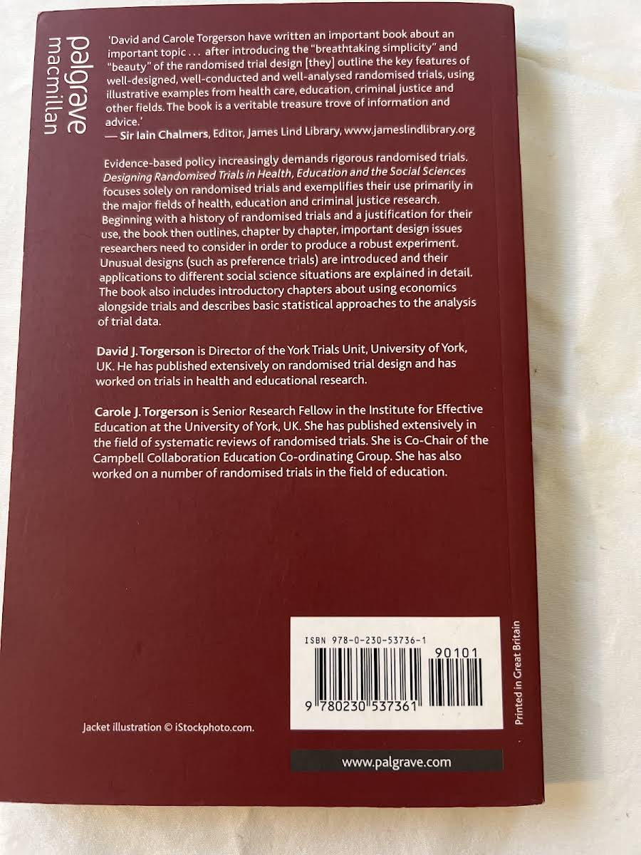 • Designing Randomised Trials in Health, Education and the Social Sciences, D. Torgerson, 9780230537361