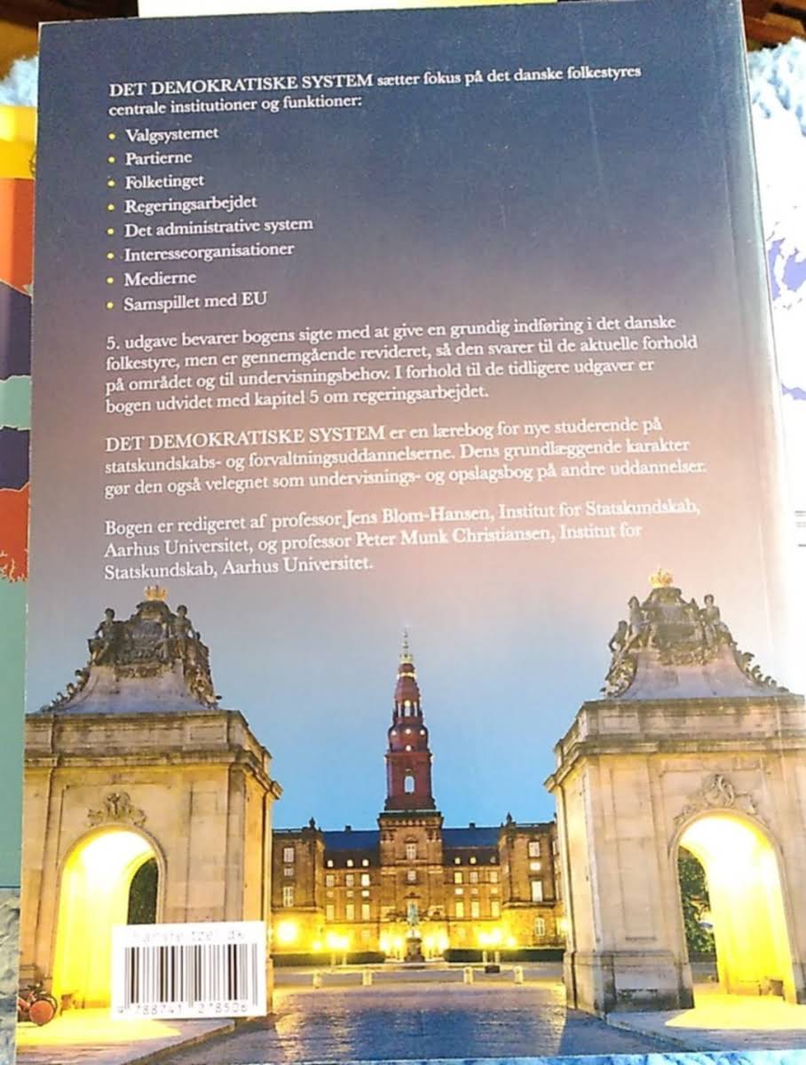 DET DEMOKRATISKE SYSTEM giver en dybdegående introduktion til de centrale institutioner og funktioner i det danske folkestyre. Bogen indgår som en lærebog, der forklarer de væsentligste elementer såsom valgsystemet, partierne, Folketinget, regeringsarbejdet, det administrative system, interesseorganisationer og medierne samt samspillet med EU. I den femte udgave er indholdet grundigt revideret for at afspejle de aktuelle forhold og de skiftende uddannelsesbehov. Desuden er bogen udvidet med et kapitel, der belyser samspillet mellem danske politiske og administrative institutioner og EU’s organer. DET DEMOKRATISKE SYSTEM er derfor ideel for nye studerende inden for statskundskab og forvaltning samt som et bredt opslagsværk på andre uddannelsesretninger.