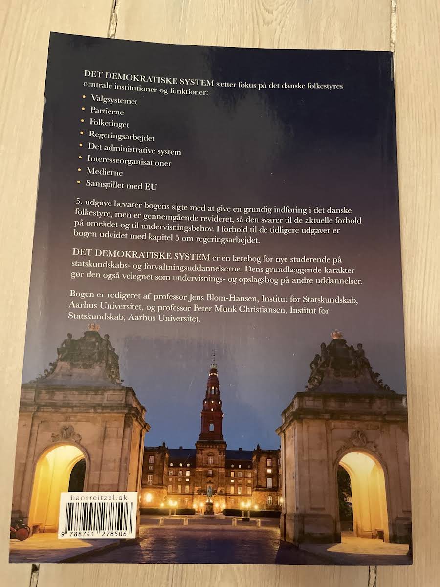DET DEMOKRATISKE SYSTEM giver en dybdegående introduktion til de centrale institutioner og funktioner i det danske folkestyre. Bogen indgår som en lærebog, der forklarer de væsentligste elementer såsom valgsystemet, partierne, Folketinget, regeringsarbejdet, det administrative system, interesseorganisationer og medierne samt samspillet med EU. I den femte udgave er indholdet grundigt revideret for at afspejle de aktuelle forhold og de skiftende uddannelsesbehov. Desuden er bogen udvidet med et kapitel, der belyser samspillet mellem danske politiske og administrative institutioner og EU’s organer. DET DEMOKRATISKE SYSTEM er derfor ideel for nye studerende inden for statskundskab og forvaltning samt som et bredt opslagsværk på andre uddannelsesretninger.
