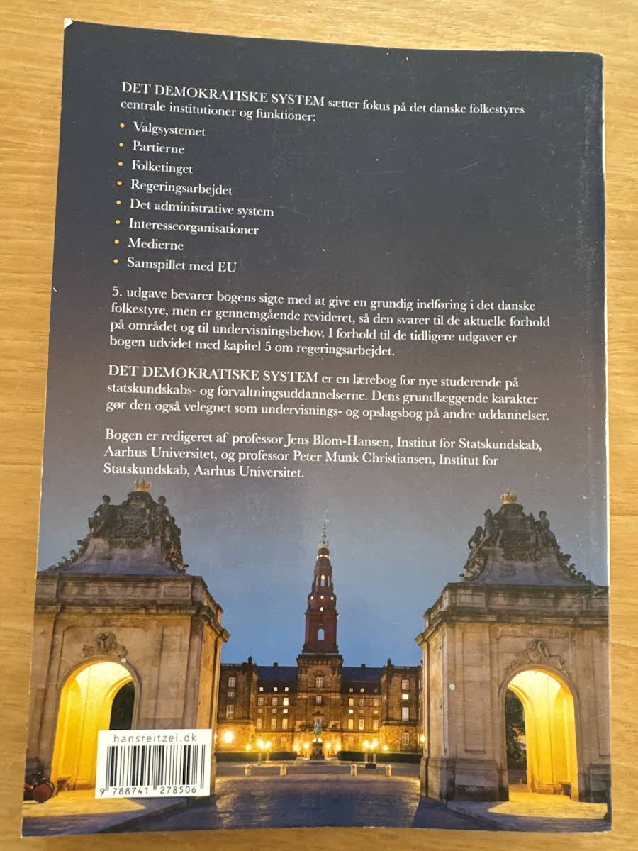 DET DEMOKRATISKE SYSTEM giver en dybdegående introduktion til de centrale institutioner og funktioner i det danske folkestyre. Bogen indgår som en lærebog, der forklarer de væsentligste elementer såsom valgsystemet, partierne, Folketinget, regeringsarbejdet, det administrative system, interesseorganisationer og medierne samt samspillet med EU. I den femte udgave er indholdet grundigt revideret for at afspejle de aktuelle forhold og de skiftende uddannelsesbehov. Desuden er bogen udvidet med et kapitel, der belyser samspillet mellem danske politiske og administrative institutioner og EU’s organer. DET DEMOKRATISKE SYSTEM er derfor ideel for nye studerende inden for statskundskab og forvaltning samt som et bredt opslagsværk på andre uddannelsesretninger.