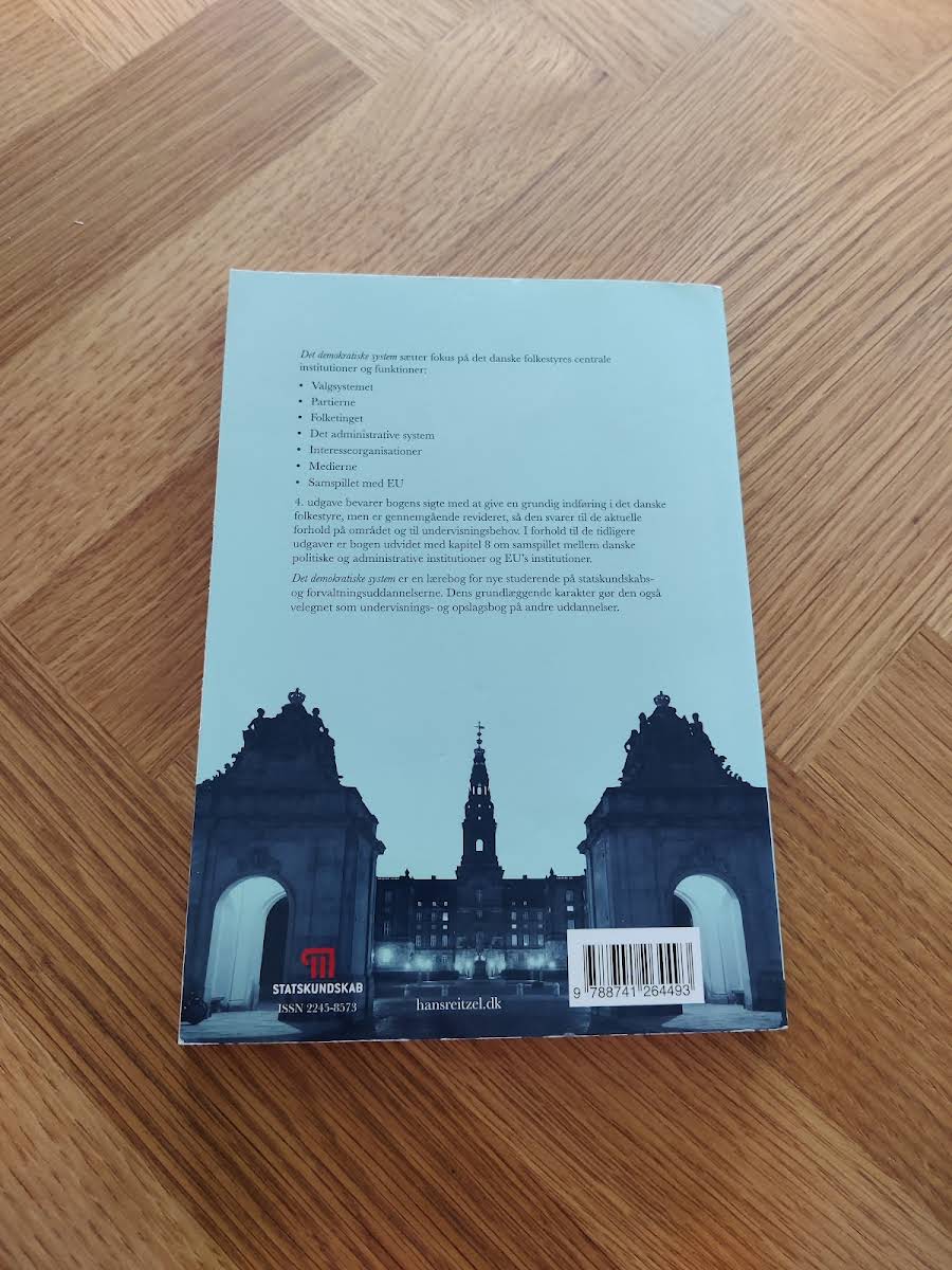 Det demokratiske system giver en indsigtsfuld gennemgang af hjørnestenene i det danske demokrati. Bogen dykker ned i væsentlige elementer som valgsystemet, de politiske partier, det parlamentariske system, den administrative struktur, interesseorganisationer, mediernes rolle og EU's betydning. I 4. udgave er bogens opbygning revideret for at afspejle de nyeste tendenser og undervisningsbehov. Den indeholder et udvidet kapitel om EU's struktur og funktion, hvilket gør den til et oplagt redskab for studerende på statskundskabs- og forvaltningsuddannelserne. Samtidig fungerer den som en alsidig undervisnings- og opslagsbog på tværs af andre uddannelsesretninger.