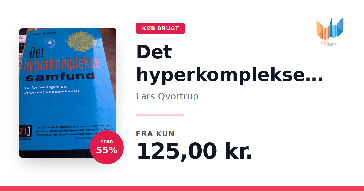 Lige nu kan du købe "Det hyperkomplekse samfund" af Lars Qvortrup til kun 125,00 kr. Du sparer hele 55% af nyprisen! Bogen du ser her er brugt, og i perfekt stand. Vi har i øjeblikket 3 eksemplarer til salg af "Det hyperkomplekse samfund", så husk at se de forskellige udgaver.