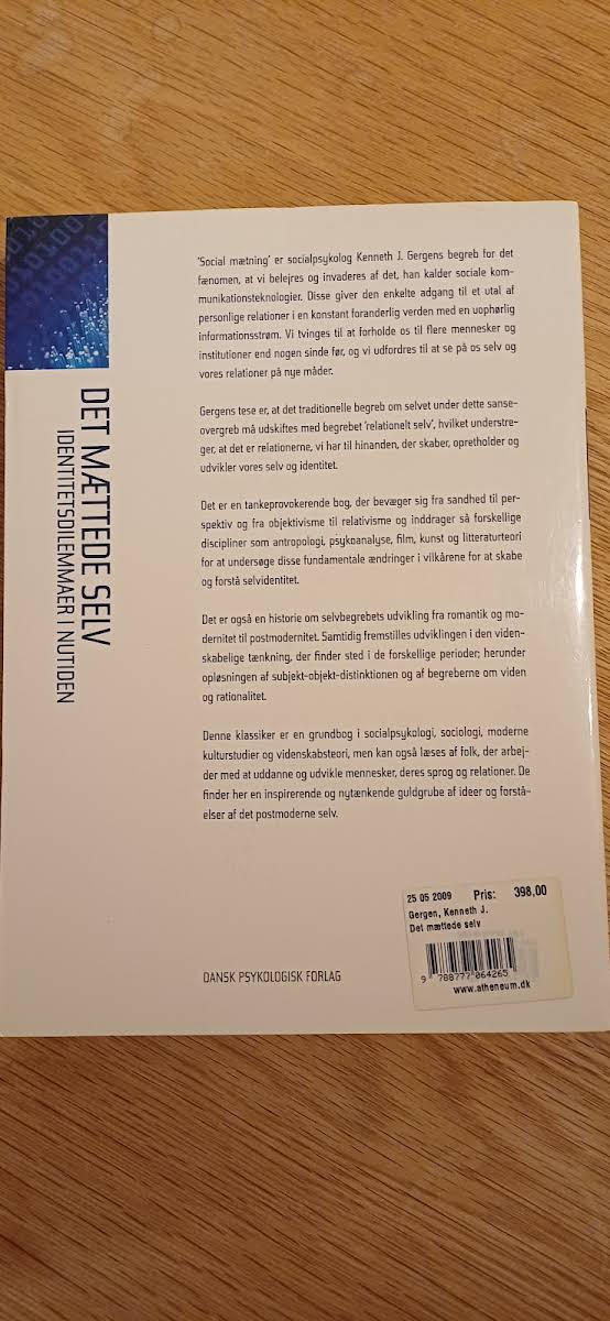 I Det mættede selv udforsker Kenneth J. Gergen, hvordan vi i en tid domineret af elektroniske sociale teknologier konstant bombarderes med information og relationer. Gergen argumenterer for, at den traditionelle opfattelse af selvet i mødet med et utal af foranderlige relationer bryder fra hinanden og giver plads til et mere relationelt selv. Bogen giver et frisk perspektiv for dem, der arbejder med menneskelig udvikling og uddannelse, idet den belyser, hvordan vores identitet formes og omformes gennem samspillet med den omgivende sociale og teknologiske verden. Med skarp indsigt i postmoderne selvopfattelser tilbyder Det mættede selv læseren en dybere forståelse af de udfordringer og muligheder, som den digitale tidsalder medfører.