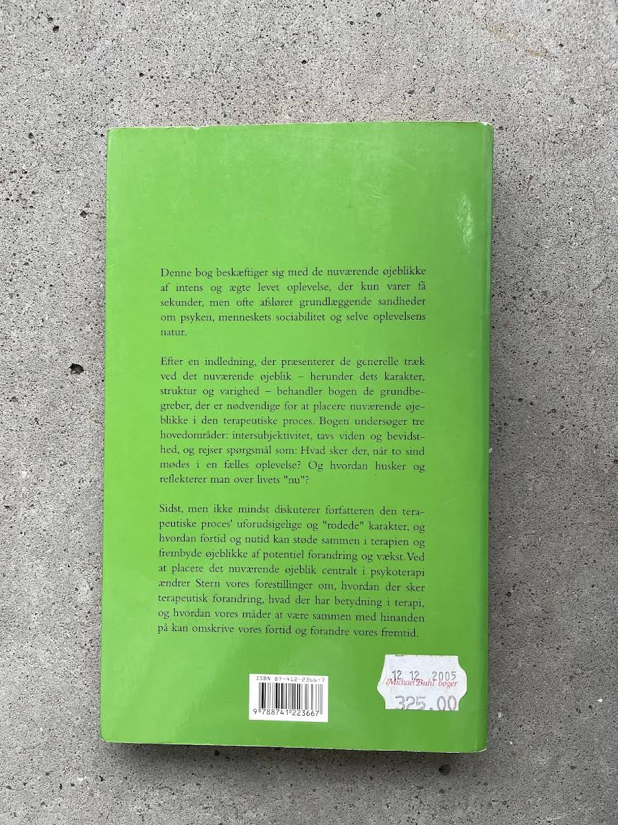 I Det nuværende øjeblik præsenterer professor Daniel N. Stern en dybdegående udforskning af, hvordan øjeblikke af intens og ægte oplevelse afslører fundamentale sandheder om psyke og menneskelig interaktion. Bogen dykker ned i, hvordan disse kortvarige, men betydningsfulde øjeblikke kan forme vores forståelse af både det indre liv og den måde, vi møder hinanden på. Gennem en nøje gennemgang af centrale begreber såsom intersubjektivitet, tavs viden og bevidsthed, illustrerer Stern, hvordan det nuværende øjeblik kan integreres i terapeutiske processer. Han viser, hvordan de mest umiddelbare oplevelser ikke blot kaster lys over vores fortid, men også peger mod, hvordan vi kan omskrive vores fremtid gennem nye måder at være sammen på. Med en kombination af teoretiske indsigter og praktiske eksempler tilbyder Det nuværende øjeblik en frisk tilgang til at forstå den terapeutiske forandringsdynamik. Bogen giver læseren mulighed for at reflektere over, hvordan et enkelt delt øjeblik kan have betydelig indflydelse på både selvopfattelse og relationer – en tilgang, der udfordrer vores konventionelle opfattelser af tid og forandring.