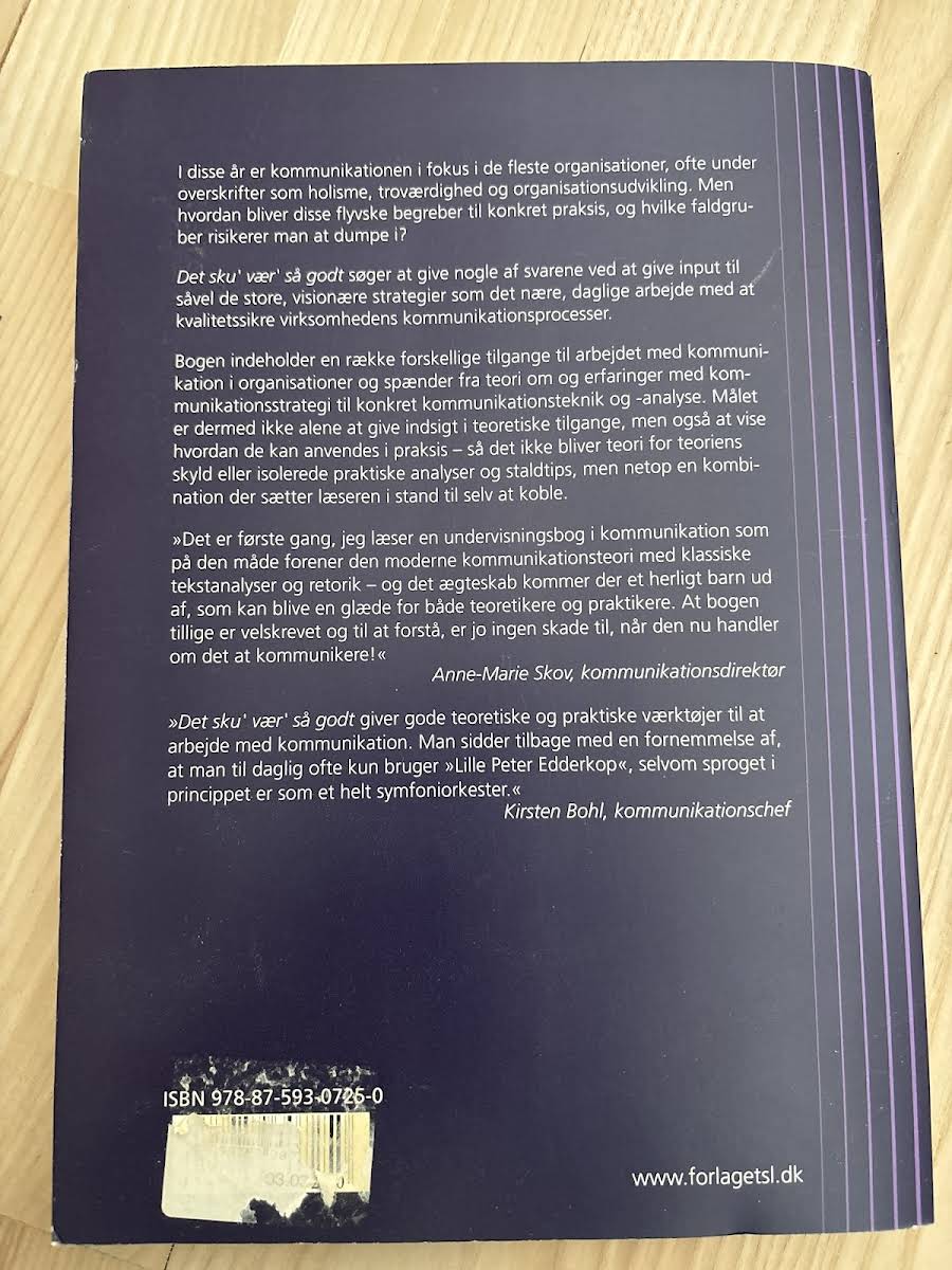 I Det sku' vær' så godt - organisationskommunikation - cases og konsekvenser dykker ned i, hvordan teori og praksis sammenvæves for at styrke den interne og eksterne kommunikation. Bogen præsenterer konkrete eksempler og udfordringer, som belyser de mange facetter af moderne organisationskommunikation. Med en kombination af cases, praktiske erfaringer og teoretiske overvejelser giver Anne Katrine Lund Helle Petersen et nuanceret billede af kommunikationsrollen. Diskussioner om holisme, troværdighed og strategiske overvejelser gør værket til en værdifuld ressource for alle, der ønsker at fordybe sig i, hvordan man omsætter flyvske begreber til håndgribelig praksis.