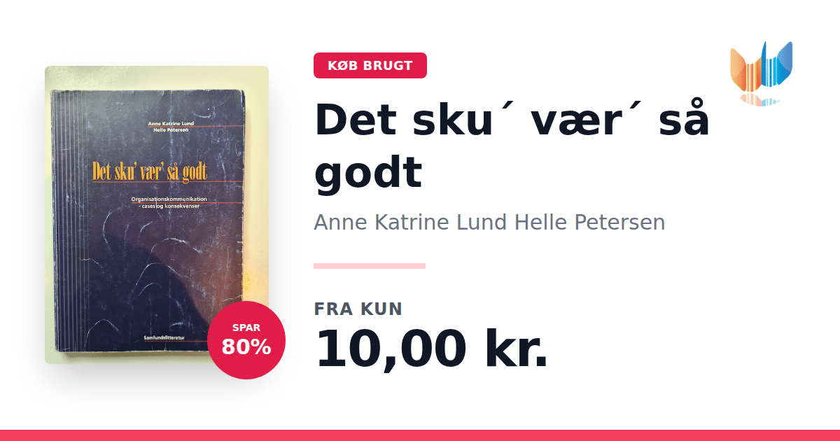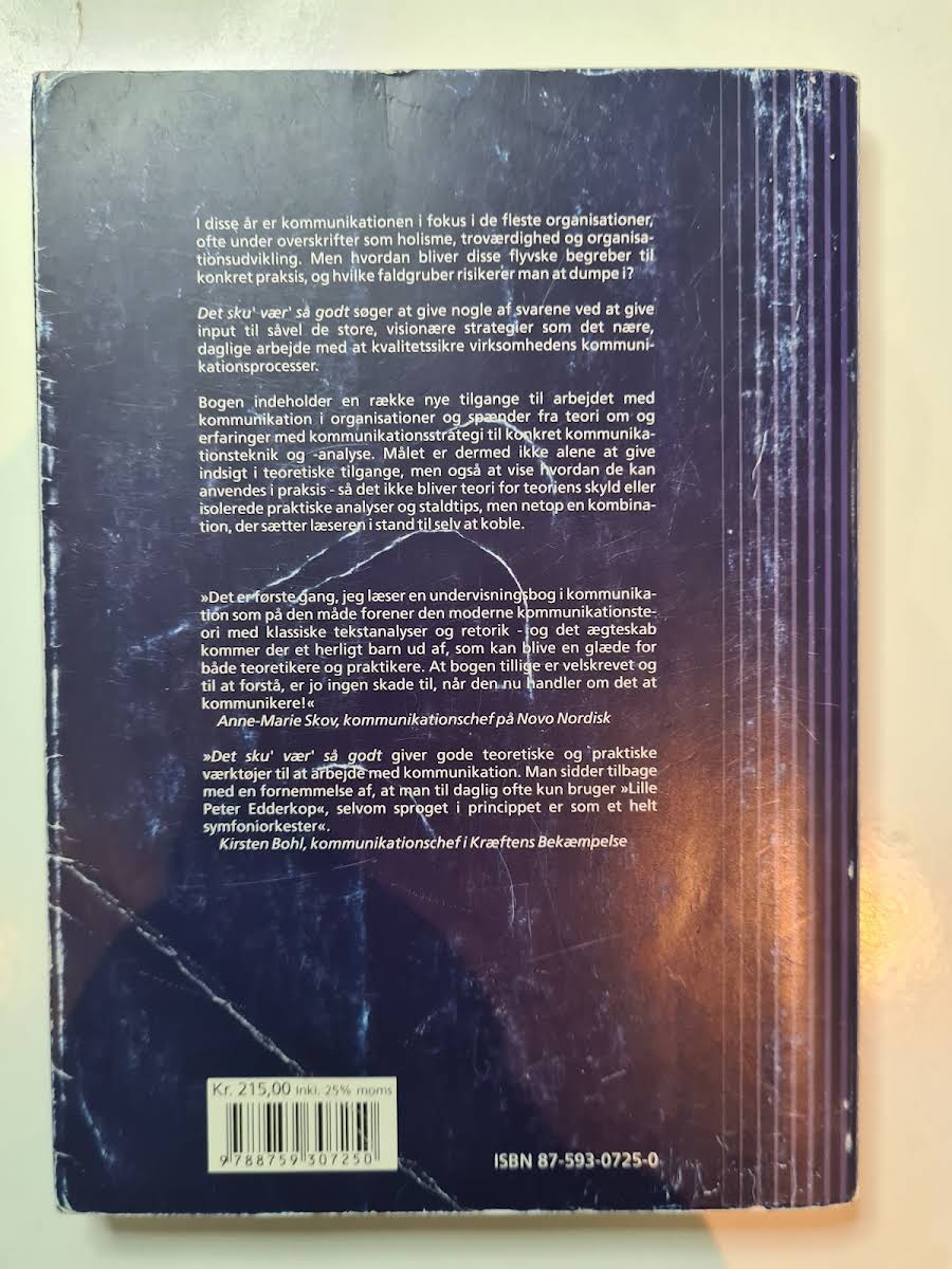 I Det sku' vær' så godt - organisationskommunikation - cases og konsekvenser dykker ned i, hvordan teori og praksis sammenvæves for at styrke den interne og eksterne kommunikation. Bogen præsenterer konkrete eksempler og udfordringer, som belyser de mange facetter af moderne organisationskommunikation. Med en kombination af cases, praktiske erfaringer og teoretiske overvejelser giver Anne Katrine Lund Helle Petersen et nuanceret billede af kommunikationsrollen. Diskussioner om holisme, troværdighed og strategiske overvejelser gør værket til en værdifuld ressource for alle, der ønsker at fordybe sig i, hvordan man omsætter flyvske begreber til håndgribelig praksis.