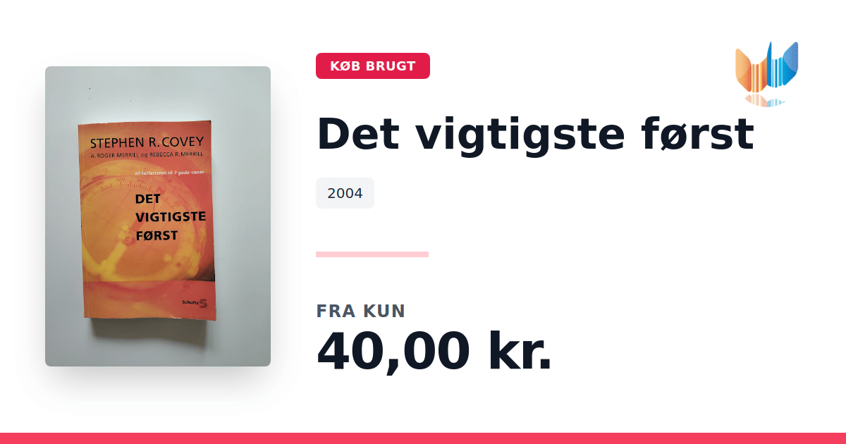 Lige nu kan du købe "Det vigtigste først" til kun 40,00 kr. Bogen du ser her er brugt, og i god stand. Vi har i øjeblikket kun et enkelt eksemplar til salg af "Det vigtigste først", så slå til mens du kan!