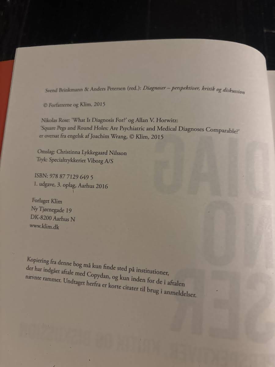 Vi lever omgivet af diagnoser i en sådan grad, at der er opstået en ny kultur - en diagnosekultur. Brugen af psykiatriske diagnoser og kategorier er eksploderet, og i dag bruges de ikke kun af fagfolk, men også af lægfolk og offentligheden. Vi anvender diagnoserne til at forstå livets udfordringer og mennesker, der falder uden for normative rammer. Hensigten er ofte at hjælpe, men følgerne kan være mere komplekse, end vi forestiller os. Diagnoser - Perspektiver, kritik og diskussion undersøger diagnosekulturen med et kritisk blik og diskuterer dens samfundsmæssige og individuelle betydning. Gennem bidrag fra Svend Brinkmann og Anders Petersen belyses, hvordan diagnoser former identitet, magtforhold og sociale normer. Med en række perspektiver og kritiske analyser inviteres læseren til at reflektere over, hvad diagnoseboomet reelt koster og gavner. Bogen henvender sig til både fagfolk og den nysgerrige læser, der ønsker indsigt i de komplekse konsekvenser af vores diagnosekultur.