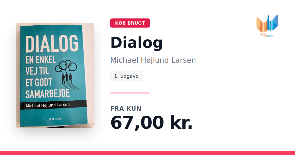 Lige nu kan du købe "Dialog" af Michael Højlund Larsen til kun 67,00 kr. Bogen du ser her er brugt, og i god stand. Vi har i øjeblikket kun et enkelt eksemplar til salg af "Dialog", så slå til mens du kan!