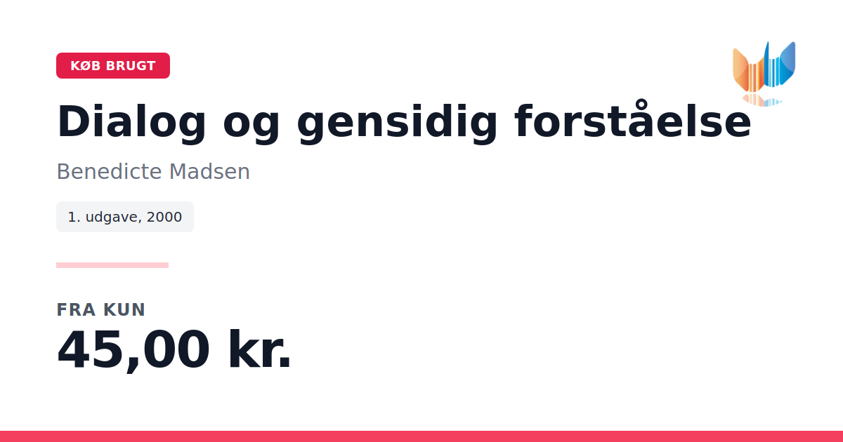 Lige nu kan du købe "Dialog og gensidig forståelse" af Benedicte Madsen til kun 45,00 kr. Du sparer hele 84% af nyprisen! Bogen du ser her er brugt, og i perfekt stand. Vi har i øjeblikket 3 eksemplarer til salg af "Dialog og gensidig forståelse", så husk at se de forskellige udgaver.