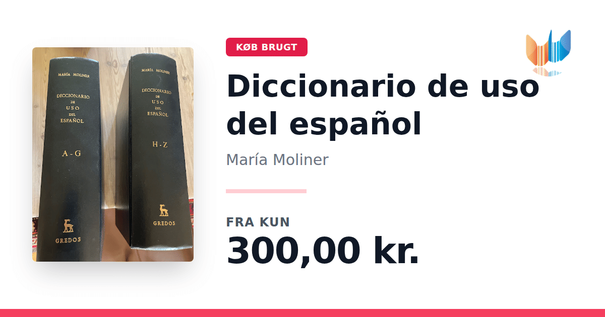 Lige nu kan du købe "Diccionario de uso del español" af María Moliner til kun 300,00 kr. Bogen du ser her er brugt, og i perfekt stand. Vi har i øjeblikket 2 eksemplarer til salg af "Diccionario de Uso del Español", så husk at se de forskellige udgaver.