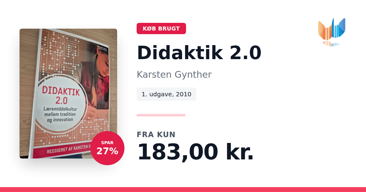 Lige nu kan du købe "Didaktik 2.0" af Karsten Gynther til kun 183,00 kr. Du sparer hele 27% af nyprisen! Bogen du ser her er brugt, og i perfekt stand. Vi har i øjeblikket kun et enkelt eksemplar til salg af "Didaktik 2.0", så slå til mens du kan!