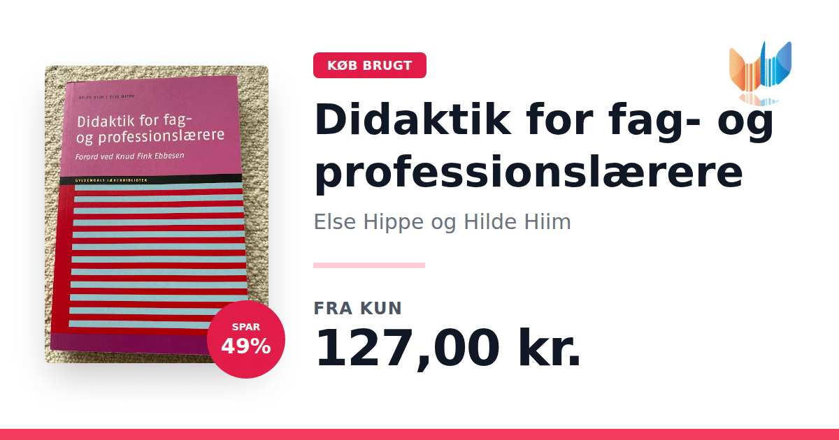 Lige nu kan du købe "Didaktik for fag- og professionslærere" af Else Hippe og Hilde Hiim til kun 127,00 kr. Du sparer hele 49% af nyprisen! Bogen du ser her er brugt, og i perfekt stand. Vi har i øjeblikket kun et enkelt eksemplar til salg af "Didaktik for fag- og professionslærere", så slå til mens du kan!
