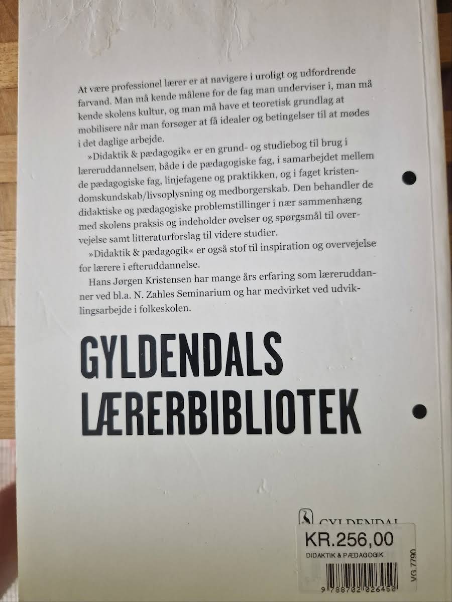 Didaktik & pædagogik af Hans Jørgen Kristensen udgivet af Gyldendal i 2007 er en grundbog for lærerstuderende, der ønsker at udforske både didaktiske og pædagogiske perspektiver i skolens hverdag. Bogen integrerer teori med praksis og sætter fokus på at forstå og håndtere de pædagogiske dilemmaer, der opstår i undervisningen. Bogen indeholder øvelser, refleksionsspørgsmål og litteraturforslag, der giver læseren mulighed for at dykke dybere ned i de didaktiske og pædagogiske spørgsmål. Med sin kombination af teoretisk indsigt og praktisk anvendelighed er denne grundbog et værdifuldt redskab for alle, der interesserer sig for skolens pædagogiske praksis.