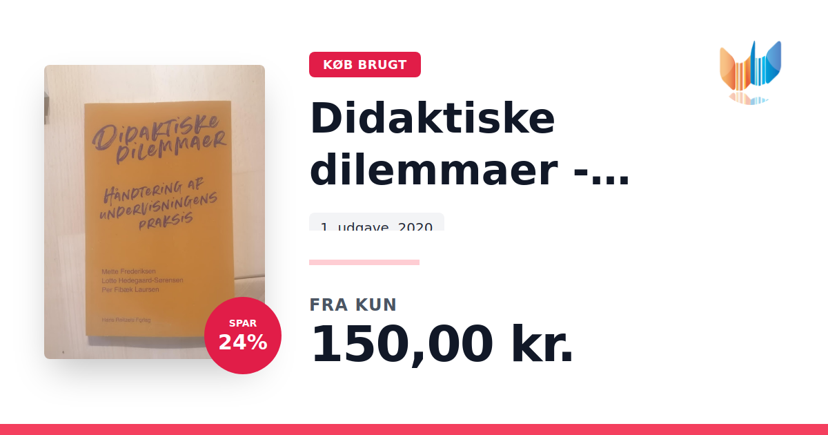 Didaktiske dilemmaer: Håndtering af undervisningens praksis giver et realistisk og praksisnært blik på undervisningens hverdag. Bogen henvender sig til lærere, pædagogstuderende og alle, der arbejder med grundskoleundervisning og ønsker at styrke deres didaktiske dømmekraft. Undervisningen er uforudsigelig, fordi den skabes i samspillet mellem lærer og elever. Standardiserede metoder og forenklede koncepter fjerner kompleksiteten - og risikerer dermed at forringe kvaliteten. I stedet må læreren navigere i modsætninger og paradokser for at møde de virkelige udfordringer i klasseværelset. Opbygningen følger tre trin. Første del præsenterer en konkret case, der afdækker de mange små og store problemstillinger, som ofte får lav prioritet i en travl skolehverdag. Anden del introducerer ni centrale dilemmaer om undervisningens form, indhold og evaluering - hver med konkrete forslag til håndtering. I tredje del argumenteres der for, at det netop er gennem arbejdet med sådanne dilemmaer, at man udvikler sig til en stærk og reflekteret didaktiker.