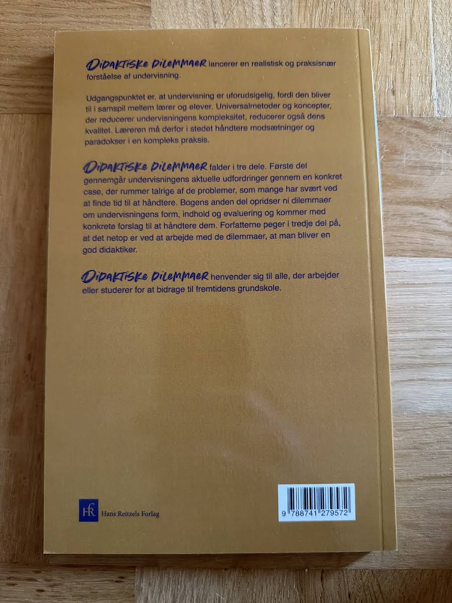 Didaktiske dilemmaer: Håndtering af undervisningens praksis giver et realistisk og praksisnært blik på undervisningens hverdag. Bogen henvender sig til lærere, pædagogstuderende og alle, der arbejder med grundskoleundervisning og ønsker at styrke deres didaktiske dømmekraft. Undervisningen er uforudsigelig, fordi den skabes i samspillet mellem lærer og elever. Standardiserede metoder og forenklede koncepter fjerner kompleksiteten - og risikerer dermed at forringe kvaliteten. I stedet må læreren navigere i modsætninger og paradokser for at møde de virkelige udfordringer i klasseværelset. Opbygningen følger tre trin. Første del præsenterer en konkret case, der afdækker de mange små og store problemstillinger, som ofte får lav prioritet i en travl skolehverdag. Anden del introducerer ni centrale dilemmaer om undervisningens form, indhold og evaluering - hver med konkrete forslag til håndtering. I tredje del argumenteres der for, at det netop er gennem arbejdet med sådanne dilemmaer, at man udvikler sig til en stærk og reflekteret didaktiker.