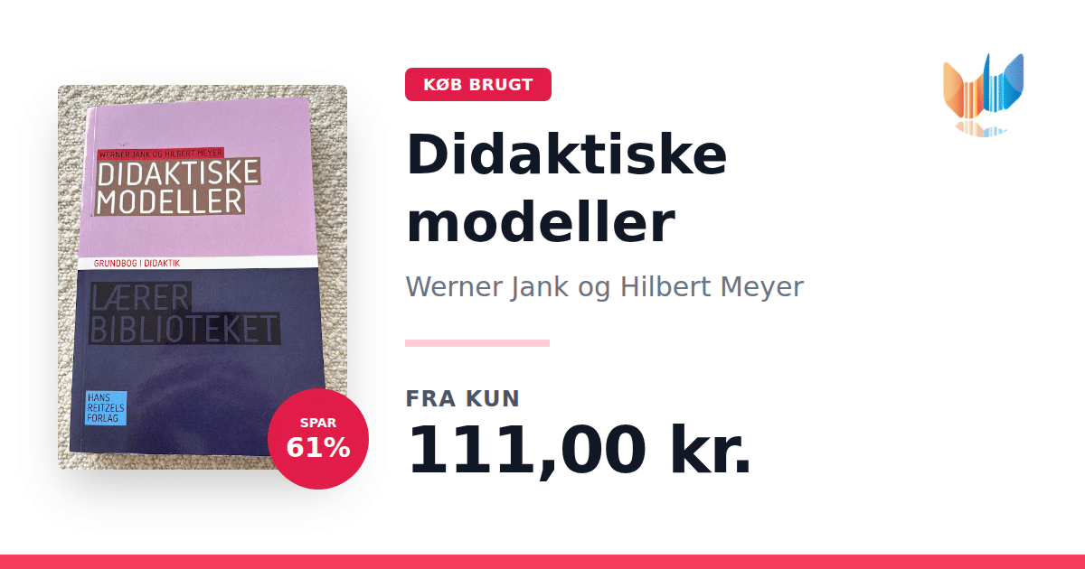 "Didaktiske modeller" af Werner Jank og Hilbert Meyer er en grundbog for lærer- og pædagogikstuderende, der sætter fokus på centrale didaktiske problemstillinger. Bogen bygger på den anerkendte tyske bestseller "Didaktische Modelle" fra 1991 og præsenterer et nøje udvalgt sortiment af teorier og modeller, der understøtter undervisningsprofessionens arbejde med virkelighedens mangfoldige udfordringer. I denne danske udgave, udgivet af Gyldendal i 2006, finder læseren en struktureret introduktion til didaktiske metoder, der vækker interesse og refleksion. Med 319 sider byder bogen på et opdateret perspektiv, der både henvender sig til studerende og undervisere, som ønsker at udvikle deres forståelse for modelleringen af undervisningssituationen.