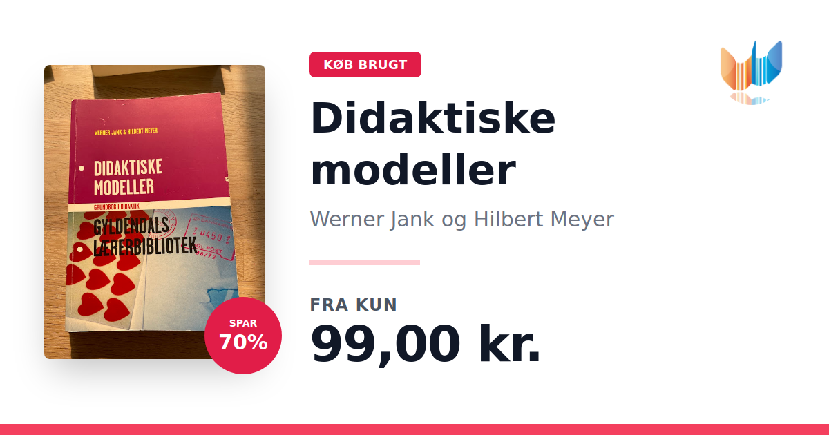 "Didaktiske modeller" af Werner Jank og Hilbert Meyer er en grundbog for lærer- og pædagogikstuderende, der sætter fokus på centrale didaktiske problemstillinger. Bogen bygger på den anerkendte tyske bestseller "Didaktische Modelle" fra 1991 og præsenterer et nøje udvalgt sortiment af teorier og modeller, der understøtter undervisningsprofessionens arbejde med virkelighedens mangfoldige udfordringer. I denne danske udgave, udgivet af Gyldendal i 2006, finder læseren en struktureret introduktion til didaktiske metoder, der vækker interesse og refleksion. Med 319 sider byder bogen på et opdateret perspektiv, der både henvender sig til studerende og undervisere, som ønsker at udvikle deres forståelse for modelleringen af undervisningssituationen.