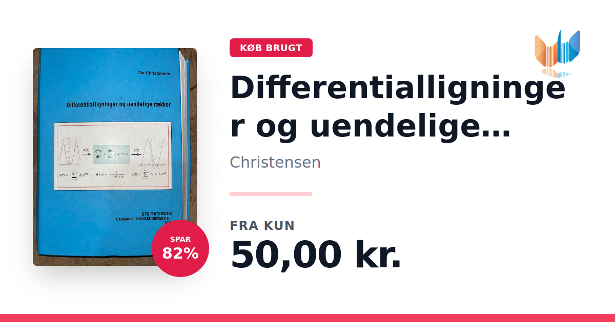 Lige nu kan du købe "Differentialligninger og uendelige rækker Hardback" af Christensen til kun 50,00 kr. Du sparer hele 82% af nyprisen! Bogen du ser her er brugt, og i god stand. Vi har i øjeblikket kun et enkelt eksemplar til salg af "Differentialligninger og uendelige rækker Hardback", så slå til mens du kan!