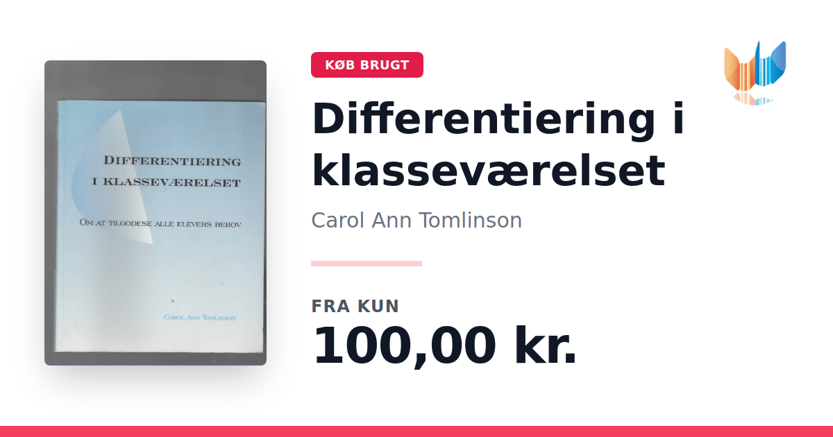 Lige nu kan du købe "Differentiering i klasseværelset" af Carol Ann Tomlinson til kun 100,00 kr. Bogen du ser her er brugt, og i perfekt stand. Vi har i øjeblikket kun et enkelt eksemplar til salg af "Differentiering i klasseværelset", så slå til mens du kan!