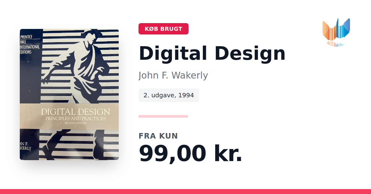 Lige nu kan du købe "Digital Design" af John F. Wakerly til kun 99,00 kr. Bogen du ser her er brugt, og i god stand. Vi har i øjeblikket 3 eksemplarer til salg af "Digital Design", så husk at se de forskellige udgaver.