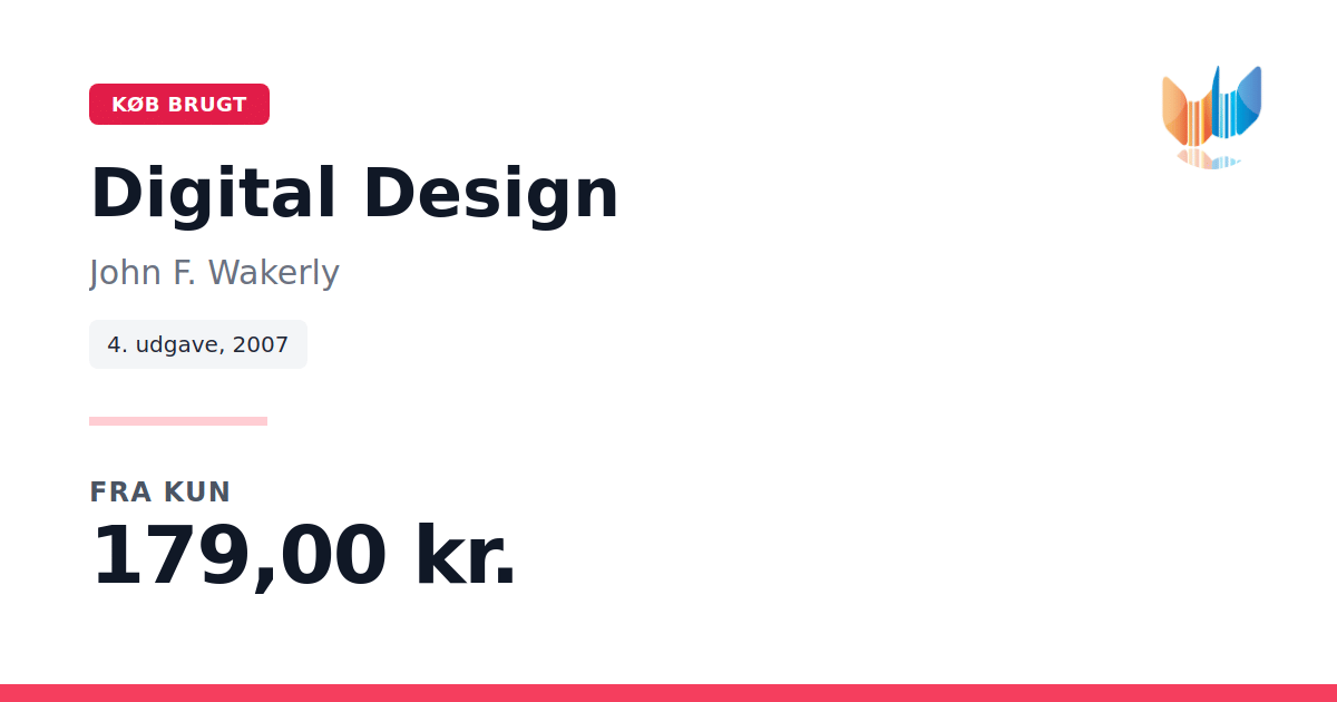 Lige nu kan du købe "Digital Design" af John F. Wakerly til kun 179,00 kr. Bogen du ser her er brugt, og i perfekt stand. Vi har i øjeblikket 3 eksemplarer til salg af "Digital Design", så husk at se de forskellige udgaver.
