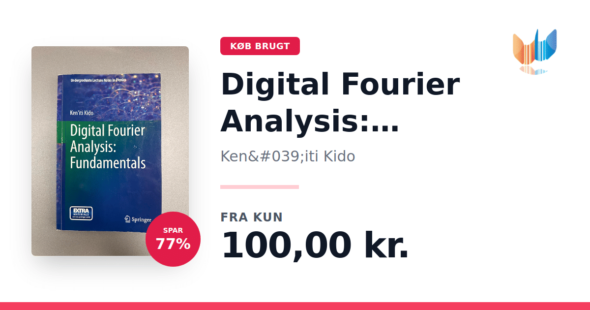 Lige nu kan du købe "Digital Fourier Analysis: Fundamentals" af Ken'iti Kido til kun 100,00 kr. Du sparer hele 77% af nyprisen! Bogen du ser her er brugt, og i god stand. Vi har i øjeblikket kun et enkelt eksemplar til salg af "Digital Fourier Analysis: Fundamentals", så slå til mens du kan!