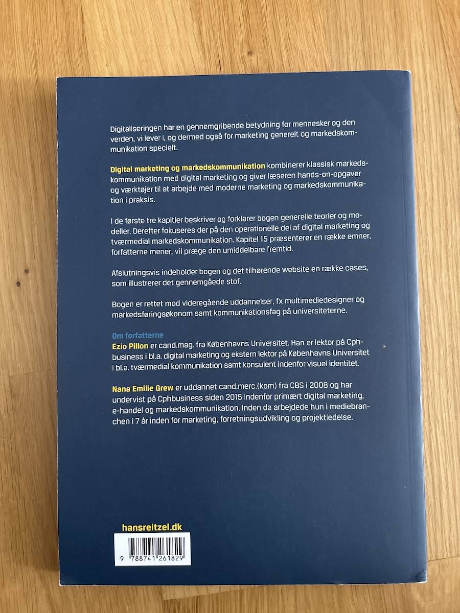 I "Digital marketing og markedskommunikation" guider Ezio Pillon og Nana Emilie Grew læseren gennem en inspirerende blanding af klassiske markedskommunikationsmodeller og moderne digital marketing. Bogen redegør for, hvordan digitaliseringen har omformet spillereglerne inden for kommunikation og markedsføring, og den giver et solidt overblik over centrale teorier og begreber, der tilpasses nutidens digitale landskab. Gennem praktiske opgaver og værktøjer giver forfatterne mulighed for at omsætte teori til praksis, så læseren kan navigere i de komplekse udfordringer, der præger moderne markedskommunikation. Bogen henvender sig primært til studerende på videregående uddannelser inden for kommunikation og marketing, der ønsker en dybdegående forståelse af, hvordan digital marketing integreres med traditionelle metoder. Undervejs introduceres opdaterede koncepter og operationelle strategier, der gør stoffet både relevant og anvendeligt. Ezio Pillon, cand.mag. fra Københavns Universitet med erfaring som lektor og konsulent, og Nana Emilie Grew, cand.merc.(kom) fra CBS med en omfattende baggrund fra mediebranchen, udgør et forfatterduo, der kombinerer teoretisk indsigt med praktisk erfaring.