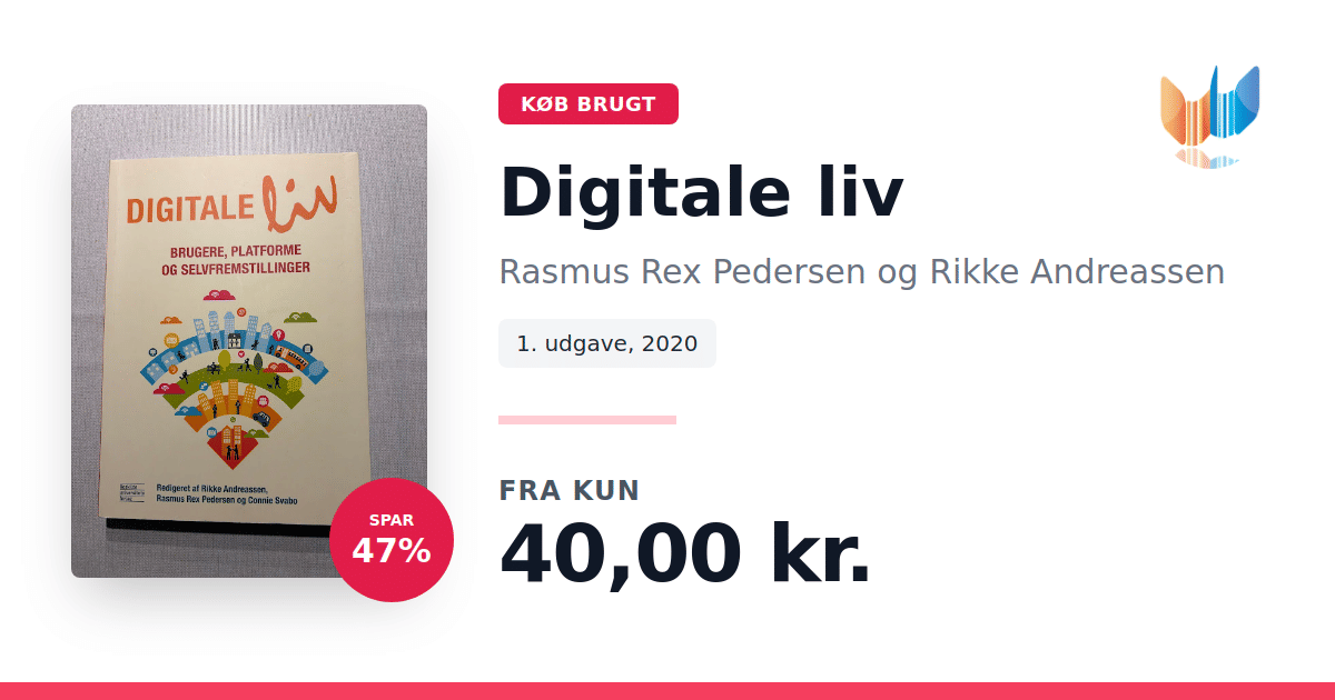 Lige nu kan du købe "Digitale liv" af Rasmus Rex Pedersen og Rikke Andreassen til kun 40,00 kr. Du sparer hele 47% af nyprisen! Bogen du ser her er brugt, og i perfekt stand. Vi har i øjeblikket kun et enkelt eksemplar til salg af "Digitale liv", så slå til mens du kan!