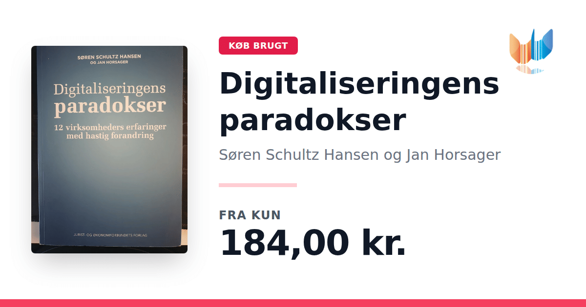 Lige nu kan du købe "Digitaliseringens paradokser" af Søren Schultz Hansen og Jan Horsager til kun 184,00 kr. Bogen du ser her er brugt, og i perfekt stand. Vi har i øjeblikket kun et enkelt eksemplar til salg af "Digitaliseringens paradokser", så slå til mens du kan!