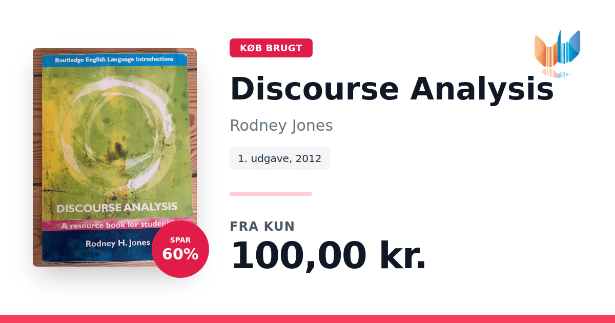 Rodney H. Jones’ Discourse Analysis: A Resource Book for Students (2012) giver et grundigt overblik over diskursanalysens kernebegreber og metoder. Bogen henvender sig særligt til studerende, der ønsker at forstå, hvordan tekster og talt sprog kan undersøges systematisk. Den præsenterer både de klassiske tilgange til tekstanalyse og mundtlig diskurs samt nyere metoder, der fokuserer på teknologisk medieret og multimodal kommunikation. Hver tilgang beskrives med klare eksempler og metodiske redskaber, der viser, hvordan teori omsættes til konkret analyse. Som ressourcebog er den udstyret med talrige øvelser og case-studier, der træner læseren i at anvende de præsenterede teknikker. Discourse Analysis giver dermed et solidt fundament for enhver, der vil arbejde videre med diskursanalyse på akademisk niveau.