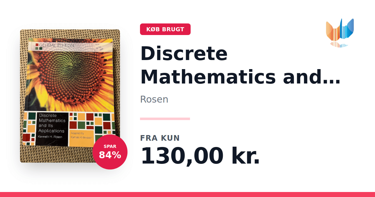 Lige nu kan du købe "Discrete Mathematics and Its Applications, Global Edition" af Rosen til kun 130,00 kr. Du sparer hele 84% af nyprisen! Bogen du ser her er brugt, og i god stand. Vi har i øjeblikket kun et enkelt eksemplar til salg af "Discrete Mathematics and Its Applications, Global Edition", så slå til mens du kan!