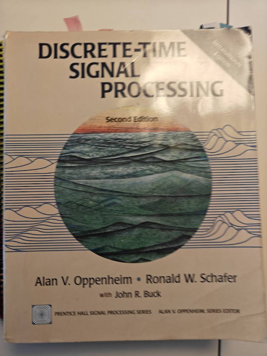 "Discrete-time Signal Processing" af Alan V. Oppenheim, Ronald W. Schafer og John R. Buck er en grundlæggende lærebog udgivet i 1999 på 870 sider i paperback-format. Den henvender sig primært til senior- og kandidatstuderende med et indledende kendskab til signaler og systemer. Bogen giver en sammenhængende og dybdegående gennemgang af de fundamentale teoremer og egenskaber ved diskrete-tids lineære systemer. Herunder behandles grundig filtrering, sampling samt den diskrete-tids Fourier-analyse, som alle spiller en central rolle i moderne digital signalbehandling. Med sit omfattende, men alligevel stringent opbyggede indhold fungerer værket både som kursusmateriale og som opslagsværk for ingeniører og forskere. Den teoretiske stringens kombineret med klare eksempler gør den uundværlig for alle, der ønsker et solidt fundament i diskret-tids signalbehandling.