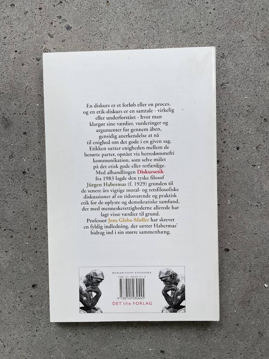 Lige nu kan du købe "Diskursetik" af Habermas til kun 83,00 kr. Du sparer hele 48% af nyprisen! Bogen du ser her er brugt, og i perfekt stand. Vi har i øjeblikket kun et enkelt eksemplar til salg af "Diskursetik", så slå til mens du kan!