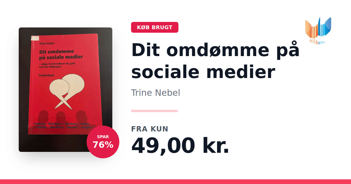 Lige nu kan du købe "Dit omdømme på sociale medier" af Trine Nebel til kun 49,00 kr. Du sparer hele 76% af nyprisen! Bogen du ser her er brugt, og i god stand. Vi har i øjeblikket kun et enkelt eksemplar til salg af "Dit omdømme på sociale medier", så slå til mens du kan!