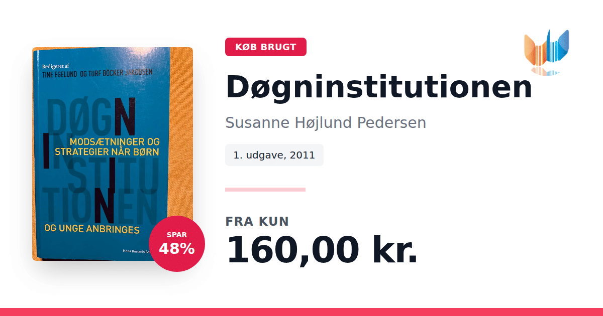 Lige nu kan du købe "Døgninstitutionen" af Susanne Højlund Pedersen til kun 160,00 kr. Du sparer hele 48% af nyprisen! Bogen du ser her er brugt, og i perfekt stand. Vi har i øjeblikket kun et enkelt eksemplar til salg af "Døgninstitutionen", så slå til mens du kan!