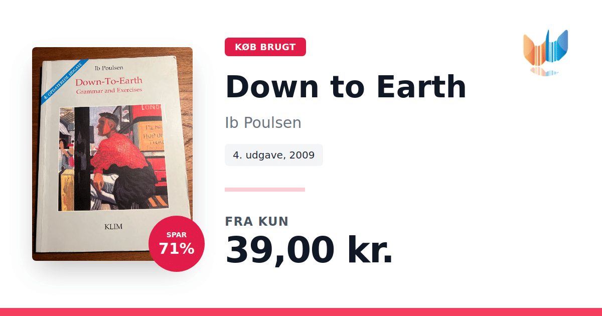 Down to Earth er en kombineret grammatik- og arbejdsbog, der hjælper eleverne med at opbygge en solid forståelse for engelsk grammatik. Bogen præsenterer de væsentlige områder på en lettilgængelig måde, så elever på ungdomsuddannelser kan få styr på de grundlæggende elementer fra starten. Med en rolig progression gennem kapitlerne og fokus på både øvelser og opgaver – herunder oversættelsesopgaver og synonymtræning – sikrer Down to Earth en systematisk træning af grammatikken. Den klare formidling og de varierende opgavetyper gør den velegnet for elever på niveau 0-B, hvor de vigtigste principper i den engelske sprogbrug løbende fordybes. Bogen, udarbejdet af Ib Poulsen og udgivet af Klim i 2009 (4. udgave), fungerer som et praktisk værktøj i undervisningen og understøtter en målrettet læreproces, der både er overskuelig og effektiv.