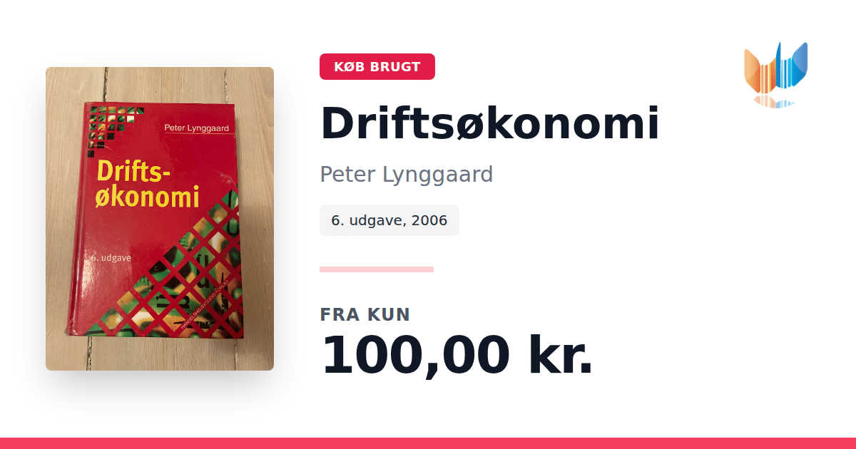 Lige nu kan du købe "Driftsøkonomi" af Peter Lynggaard til kun 100,00 kr. Bogen du ser her er brugt, og i god stand. Vi har i øjeblikket 3 eksemplarer til salg af "Driftsøkonomi", så husk at se de forskellige udgaver.
