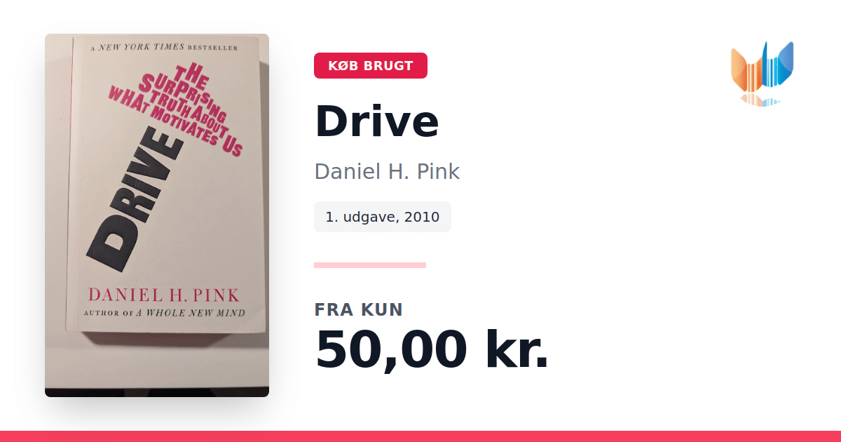 Lige nu kan du købe "Drive" af Daniel H. Pink til kun 50,00 kr. Bogen du ser her er brugt, og i god stand. Vi har i øjeblikket kun et enkelt eksemplar til salg af "Drive", så slå til mens du kan!