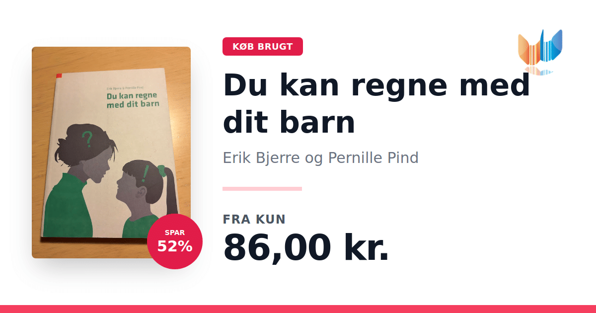 Lige nu kan du købe "Du kan regne med dit barn" af Erik Bjerre og Pernille Pind til kun 86,00 kr. Du sparer hele 52% af nyprisen! Bogen du ser her er brugt, og i god stand. Vi har i øjeblikket 2 eksemplarer til salg af "Du kan regne med dit barn", så husk at se de forskellige udgaver.
