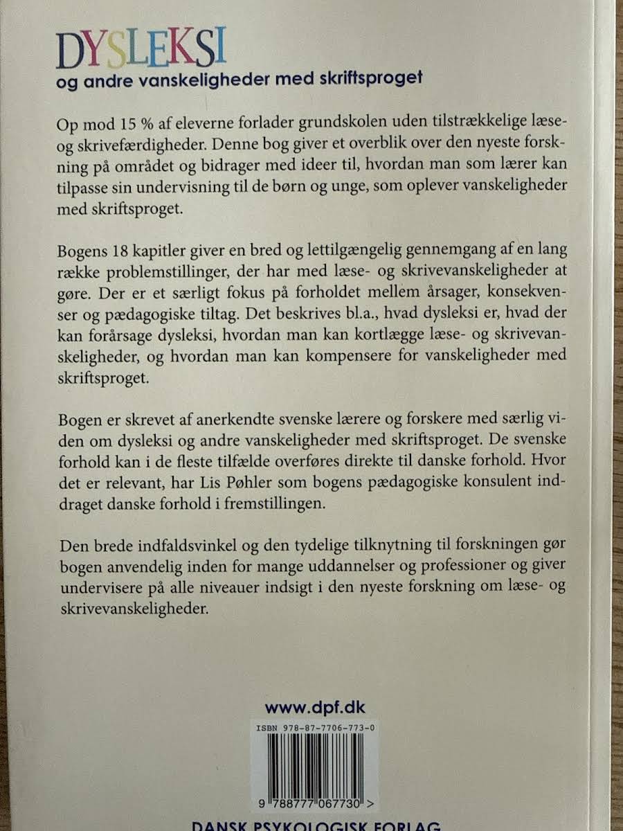 I "Dysleksi og andre vanskeligheder med skriftsproget" stiller Stefan Samuelsson skarpt på, hvordan dysleksi og andre vanskeligheder med skriftsproget opstår og kan imødekommes. Gennem en bred gennemgang af biologiske, pædagogiske og psykologiske perspektiver bliver læseren præsenteret for den nyeste forskning og de mest anvendte metoder inden for området. Bogen giver en klar og lettilgængelig introduktion til, hvad dysleksi indebærer, og hvordan man både kan kortlægge og behandle problematikken. Samuelsson og en række erfarne bidragydere belyser desuden de mange myter, der findes omkring læse- og skrivevanskeligheder, og viser, hvordan specialpædagogiske tiltag kan være med til at komplicere eller lette hverdagen for dem, der kæmper med disse udfordringer.