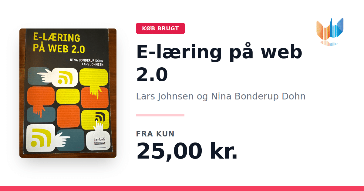 Lige nu kan du købe "E-læring på web 2.0" af Lars Johnsen og Nina Bonderup Dohn til kun 25,00 kr. Bogen du ser her er brugt, og i perfekt stand. Vi har i øjeblikket kun et enkelt eksemplar til salg af "E-læring på web 2.0", så slå til mens du kan!