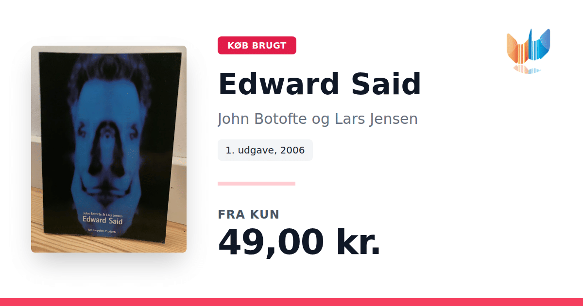 Lige nu kan du købe "Edward Said" af John Botofte og Lars Jensen til kun 49,00 kr. Bogen du ser her er brugt, og i perfekt stand. Vi har i øjeblikket kun et enkelt eksemplar til salg af "Edward Said", så slå til mens du kan!