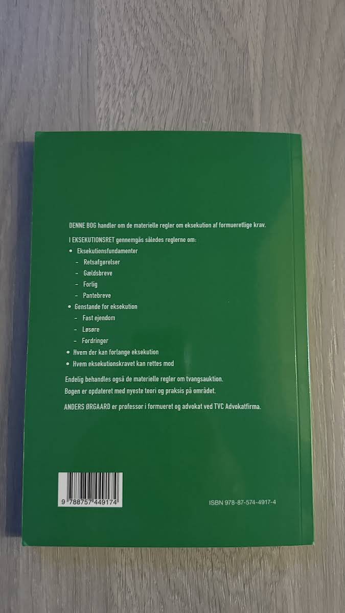 Eksekutionsret, 3. udgave fra 2020, giver en grundig gennemgang af de materielle regler, der udgør fundamentet for eksekvering af formueretlige krav. Bogen fokuserer på centrale elementer såsom retsafgørelser, gældsbreve, forlig og pantebreve, der danner baggrund for eksekutionsprocessen. Den redegør desuden for, hvordan og på hvilke forudsætninger krav kan eksekveres. Med en detaljeret behandling af, hvilke genstande – herunder fast ejendom, løsøre og fordringer – der kan komme under eksekution, undersøges også, hvem der har ret til at kræve eksekvering, samt hvem et eksekutionskrav kan rettes mod. Bogen opdaterer læseren med den nyeste teori og praksis inden for området og indeholder et solidt overblik over materiel foged- og auktionsret. Anders Ørgaard er professor i formueret og advokat ved TVC Advokatfirma.