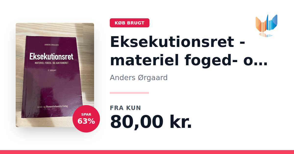 Lige nu kan du købe "Eksekutionsret - materiel foged- og auktionsret" af Anders Ørgaard til kun 80,00 kr. Du sparer hele 63% af nyprisen! Bogen du ser her er brugt, og i god stand. Vi har i øjeblikket kun et enkelt eksemplar til salg af "Eksekutionsret - materiel foged- og auktionsret", så slå til mens du kan!
