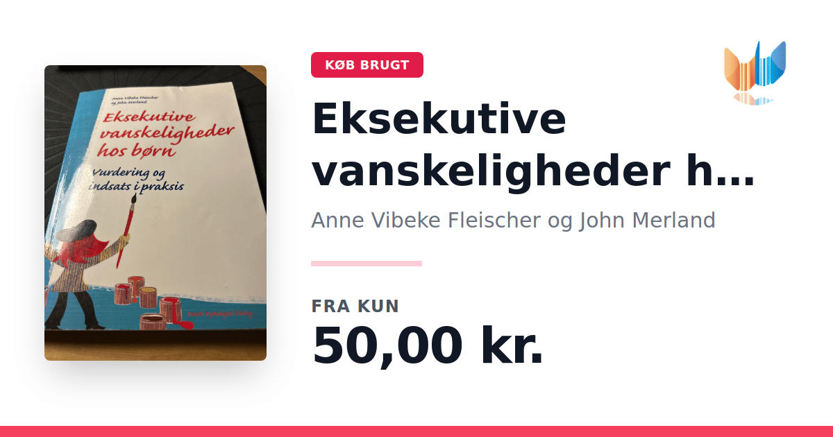 Lige nu kan du købe "Eksekutive vanskeligheder hos børn" af Anne Vibeke Fleischer og John Merland til kun 50,00 kr. Bogen du ser her er brugt, og i slidt stand. Vi har i øjeblikket kun et enkelt eksemplar til salg af "Eksekutive vanskeligheder hos børn", så slå til mens du kan!